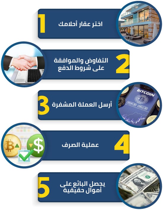بعد اختيار العقار الذي تحلم به، وافق على خطة الدفع. لا يتعين عليك إخبار المالك بأنك ستدفع باستخدام طريقة دفع مشفرة، لأنه سواء أكانت عملة مشفرة أم لا، سندفع للمالك نقدا.
