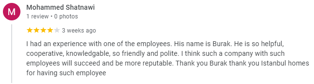Thank you for choosing Istanbul Homes and for your nice comment. We wish you happiness in your new home in Turkey.